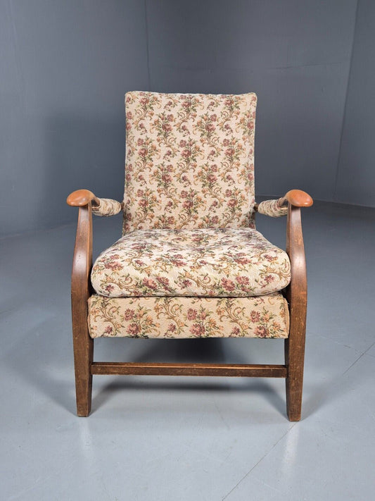 Vintage Lounge Chair Floral Cotton Wood Frme 1950s Cintique Retro EB8455 MNOR