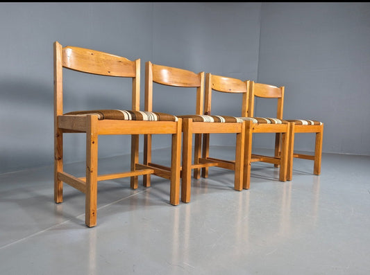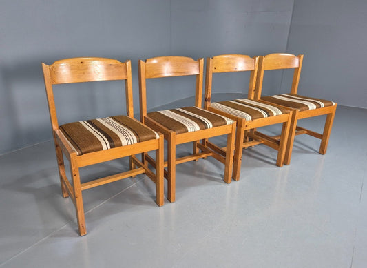 4 Vintage 1970 Swedish Pine Dining Chairs Brown and Cream Wool Retro EB7981 MDIN