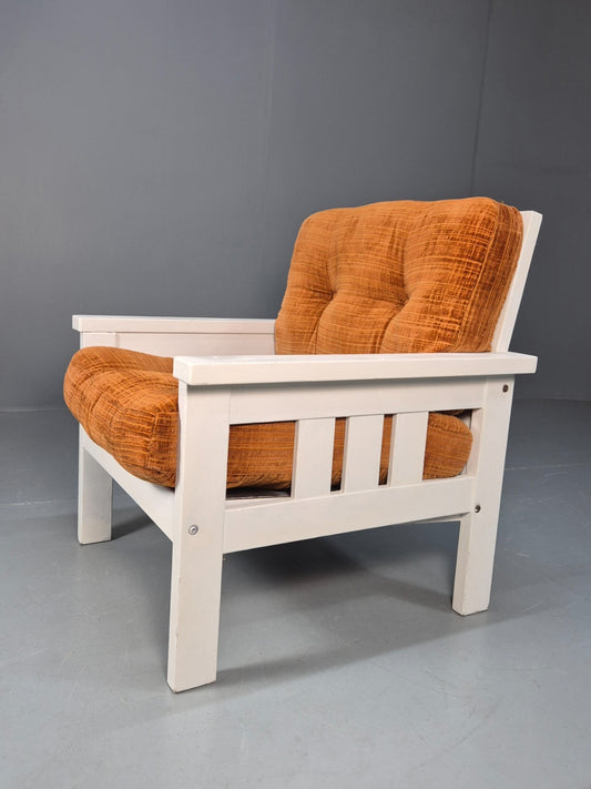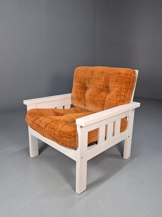 Vintage White Wood Lounge Chair with Orange Corduroy Upholstery EB9218 MNOR