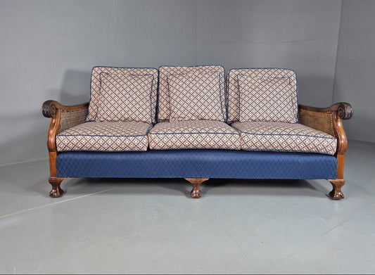 Antique Bergere Danish 3 Seat Settee Ball and Claw Feet 1900s EB7992 V3SS