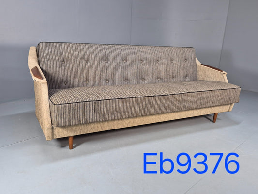 Vintage Danish Sofa Bed 1960s Grey and Cream Wool MCM Retro EB9376 M4SS