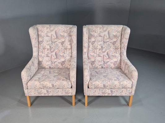2 Vintage Danish Wing Back Lounge Chairs 1980s Retro EB8290 MNOR