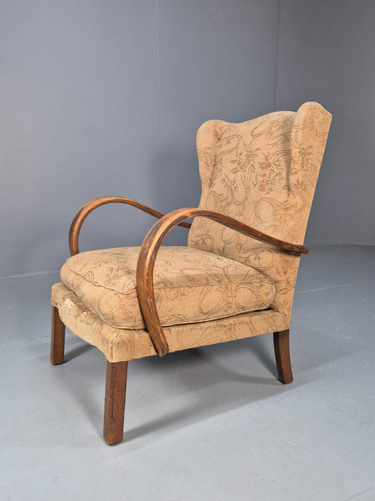 Vintage 1950s Lounge Chair Bentwood Arms Wing Back Retro EB10264 MBEN