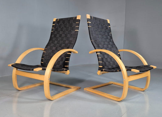 2 Vintage Danish Bentwood and Canvas Lounge Chairs Aalto Style 1980s EB7228 MBEN