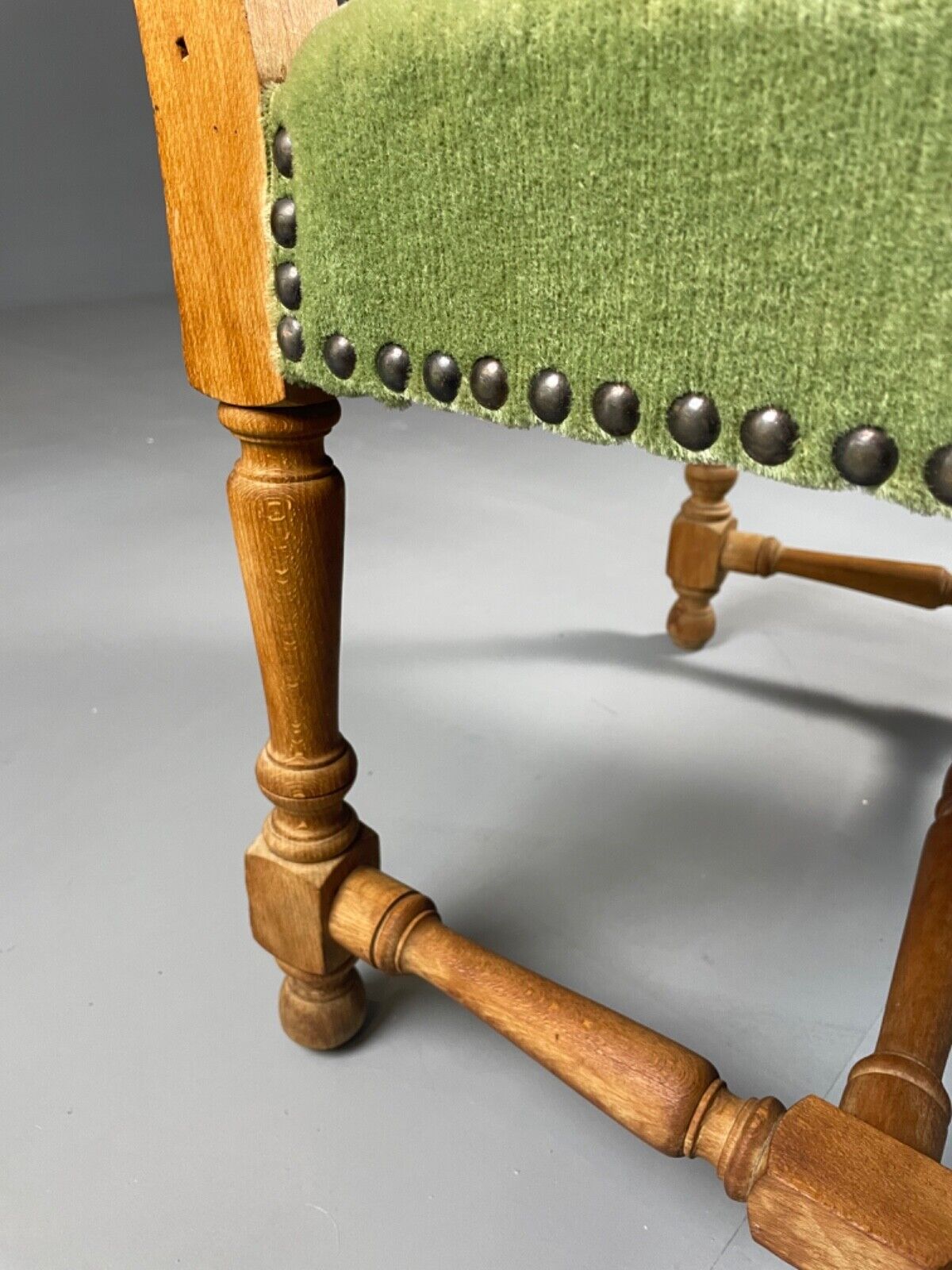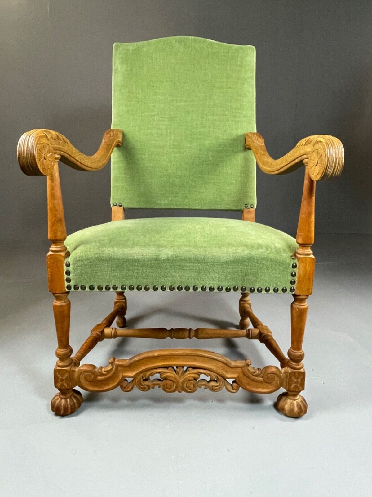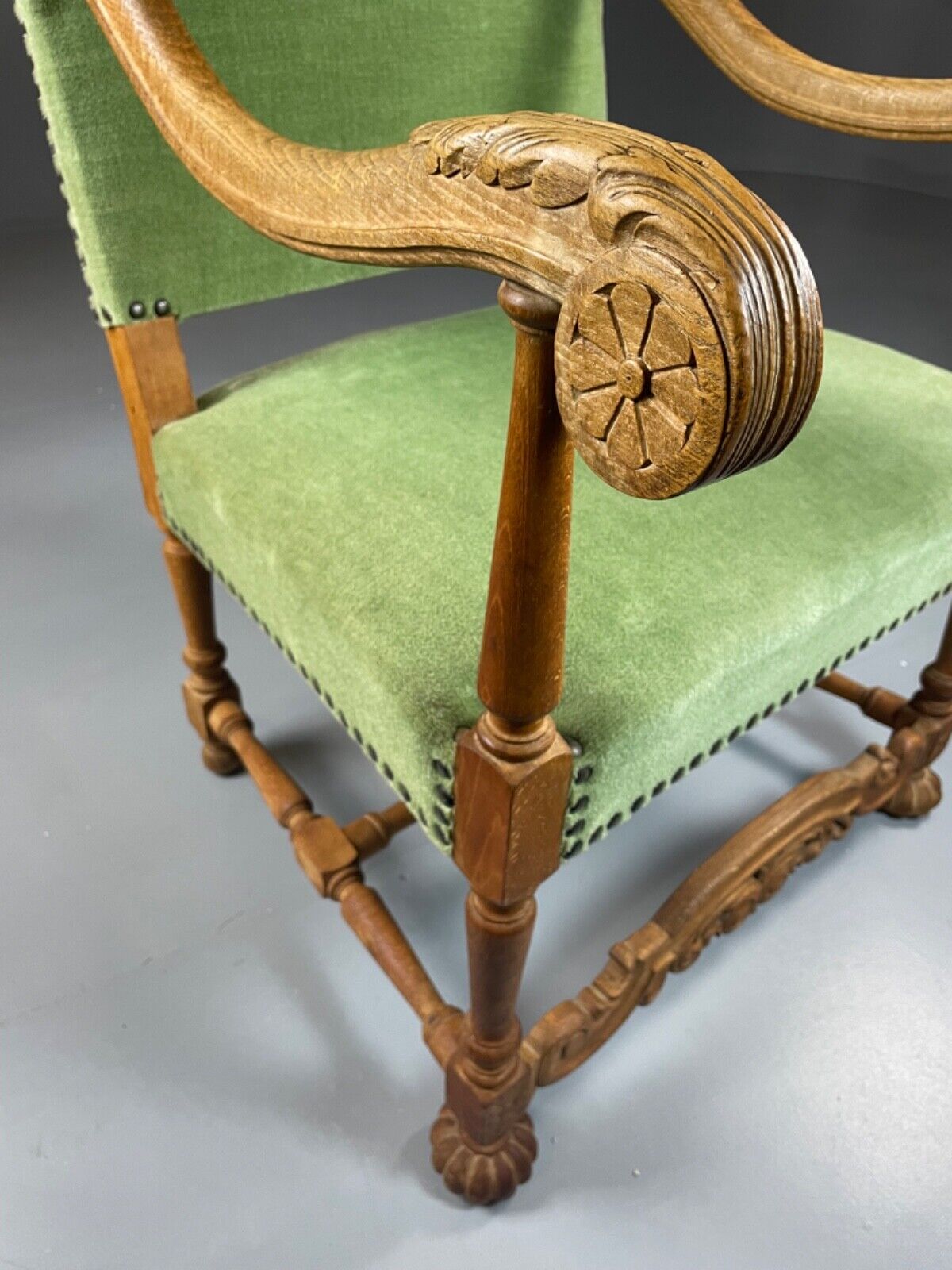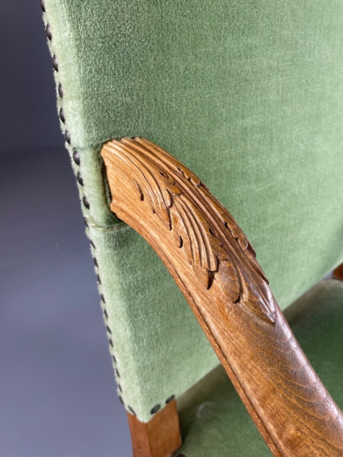 Danish Early 20th Century Carved Oak And Green Velour Chair, Antique EB4649 VCAR