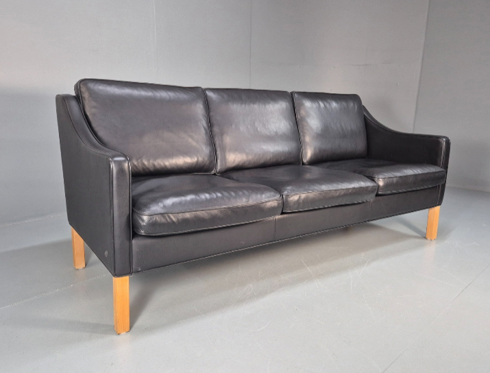 1x Vintage Hurup Danish 3 Seat Black Leather Sofa Mogensen 1980s Retro EB9966 M3SS