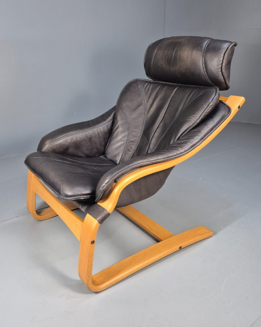 1x Vintage Black Leather Armchair Bentwood Ake Fribytter Design Danish EB9256 MBEN