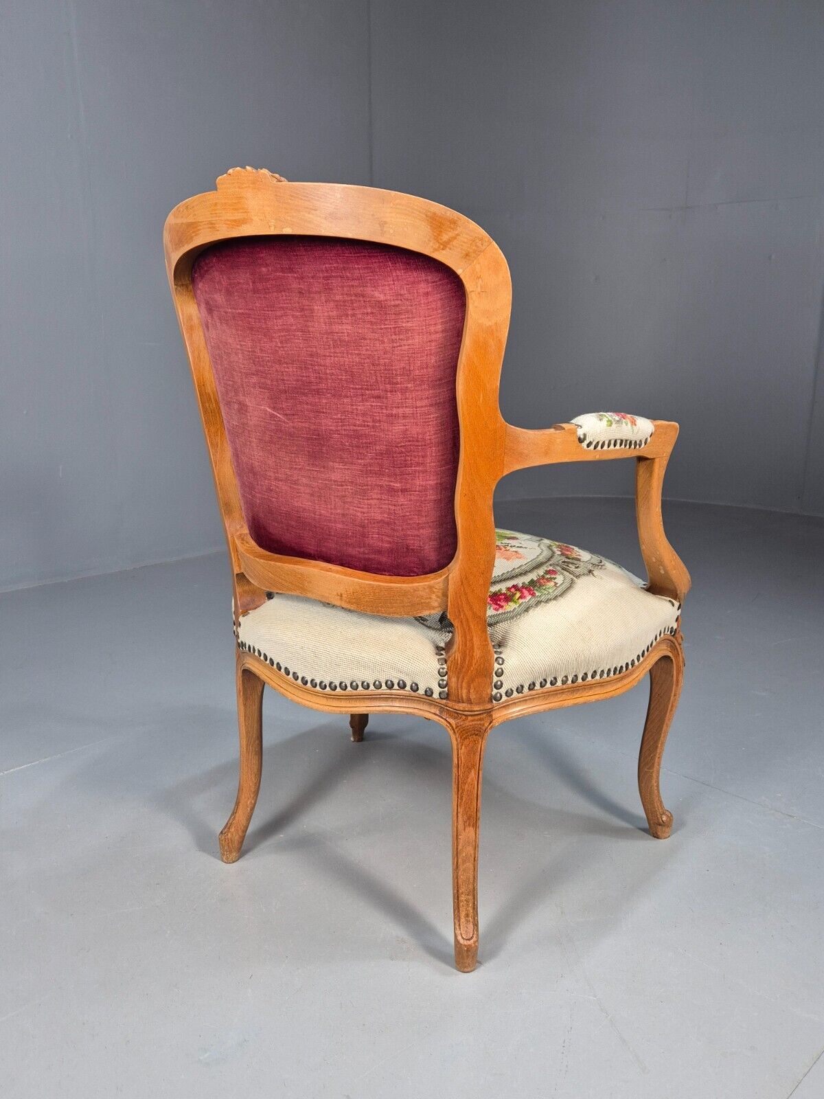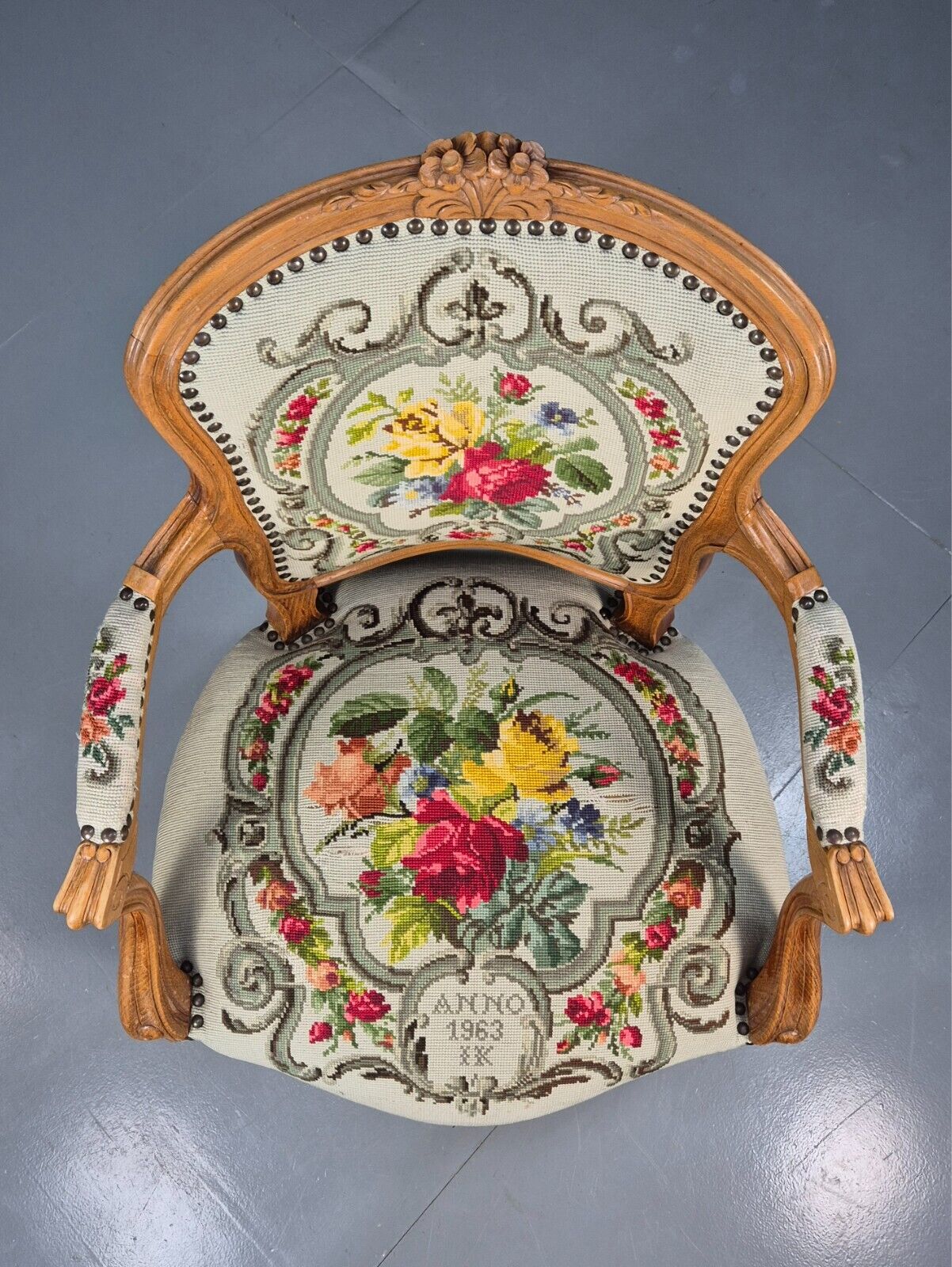 Vintage Danish Fauteuil Chair Embroidery French Antique Style 1963 EB8082 VCAR