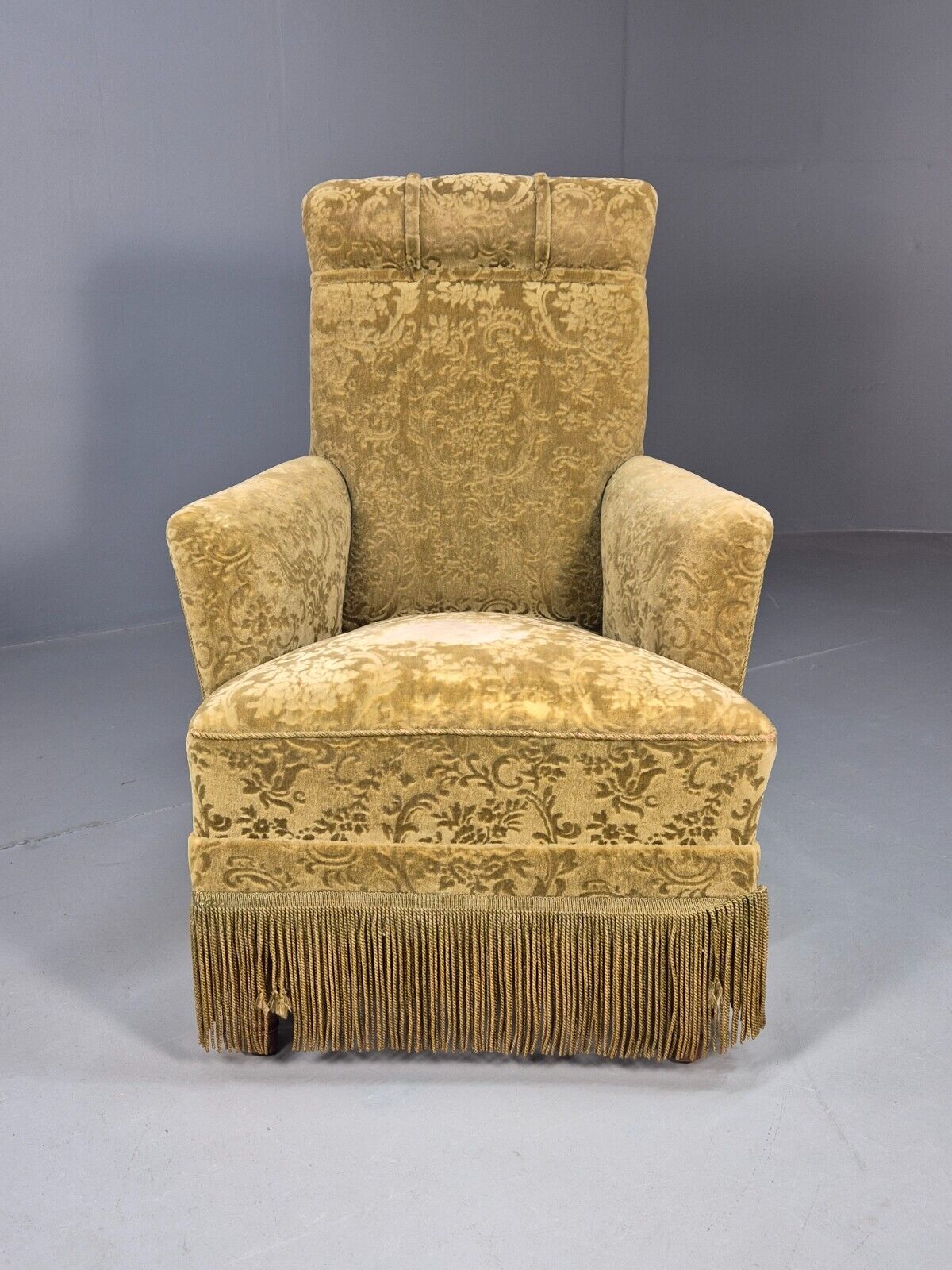 Vintage Danish Lounge Chair Green Moquette Tassels Antique 1900s EB8458 VCLO