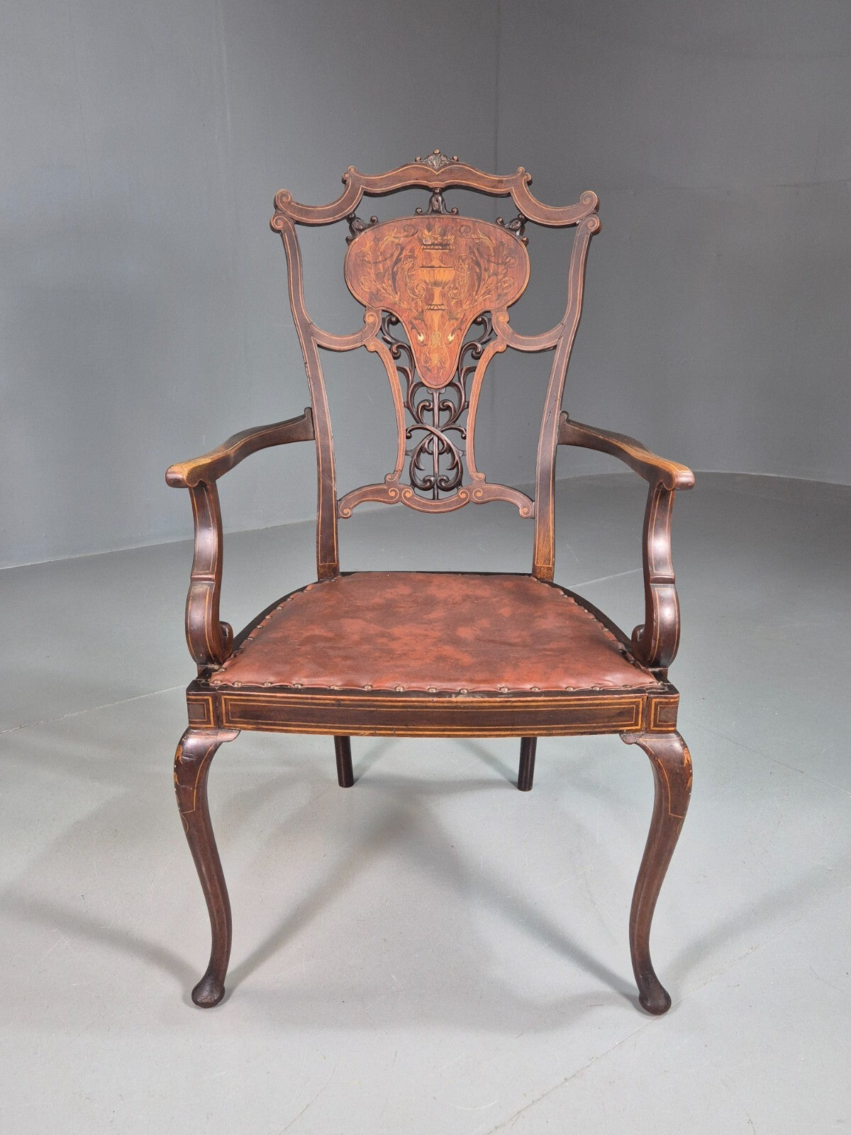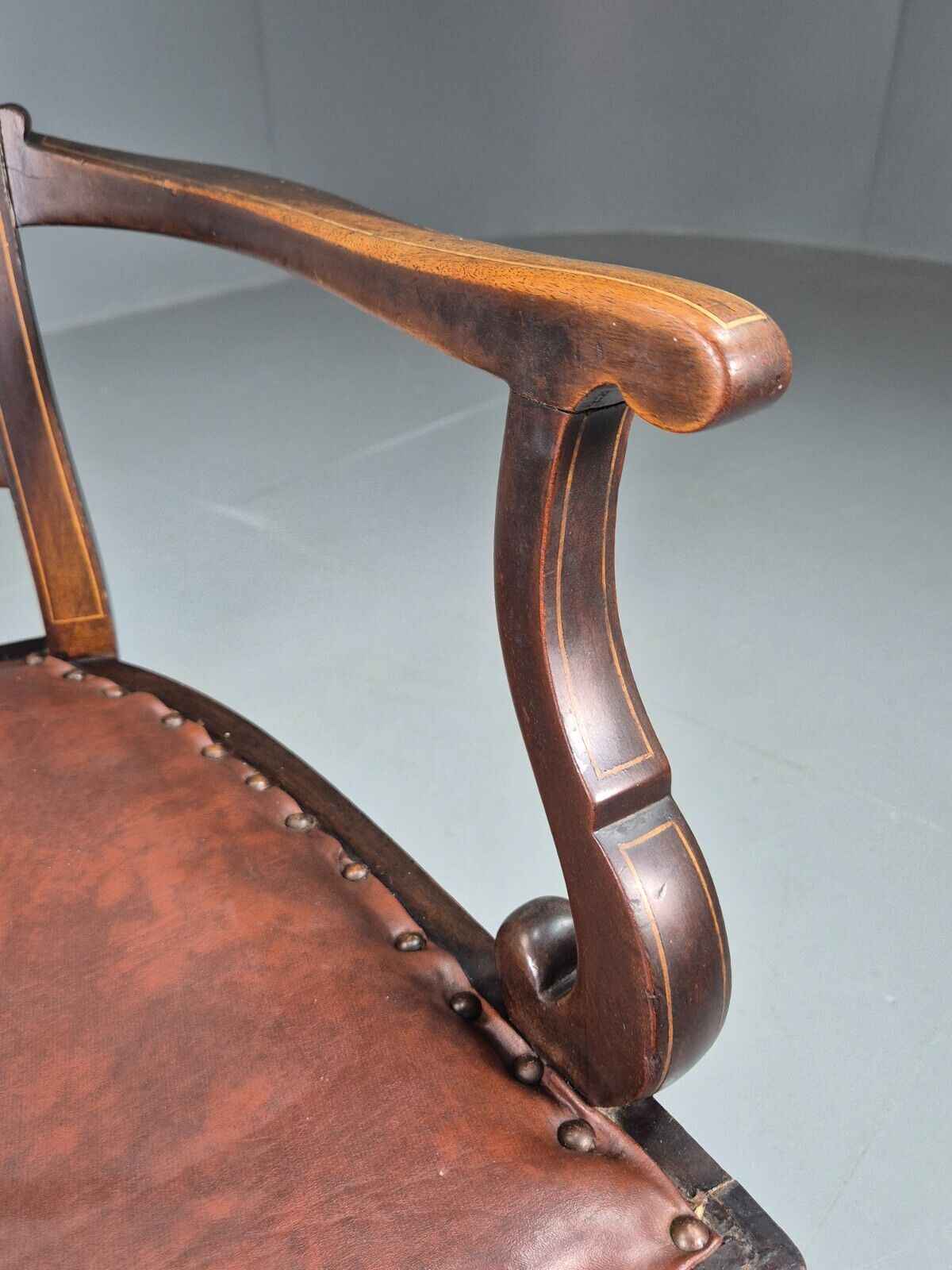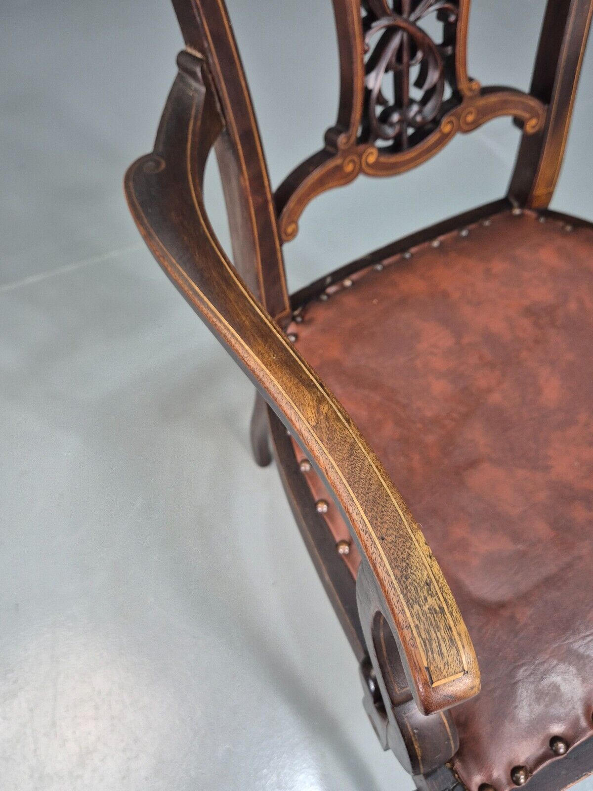 Vintage Elbow Carver Chair Vinyl Mahogany Inlay Antique EB7798 VCAR