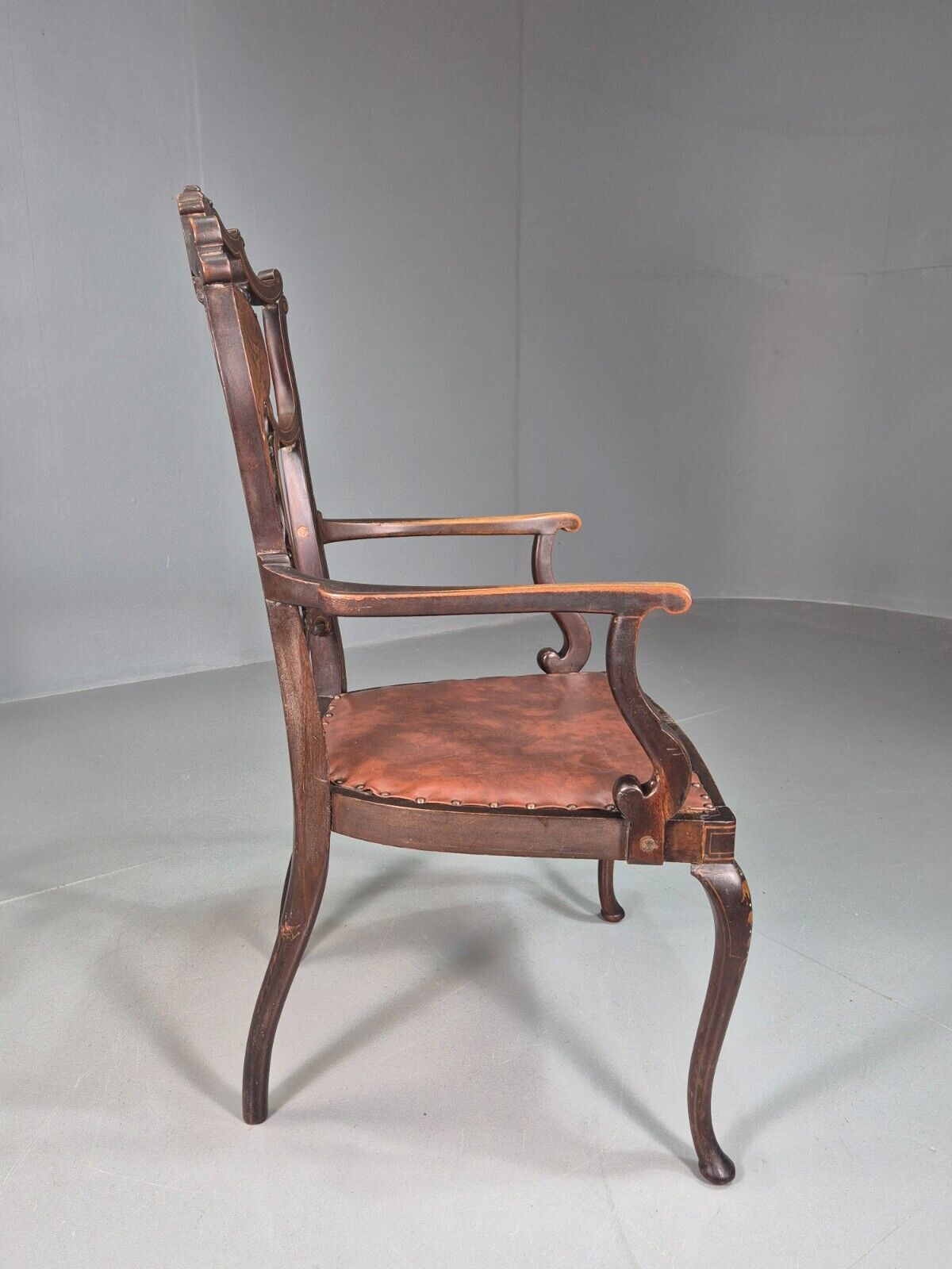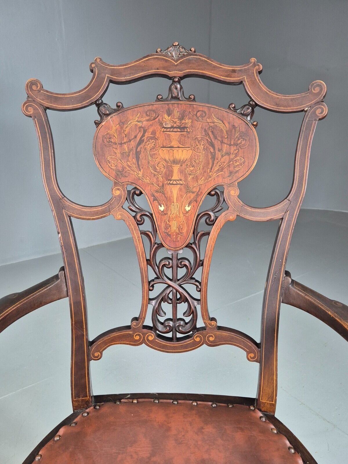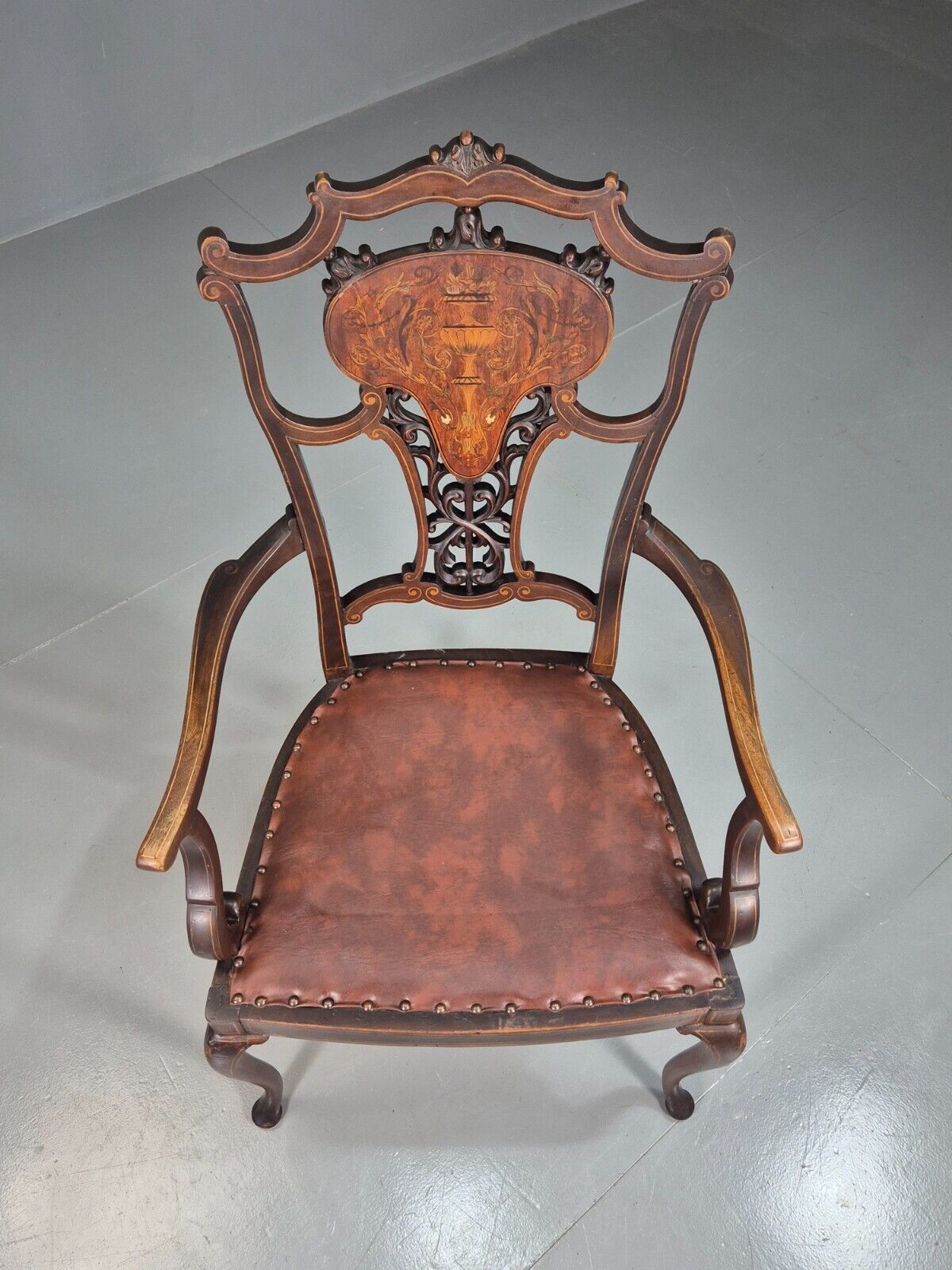 Vintage Elbow Carver Chair Vinyl Mahogany Inlay Antique EB7798 VCAR