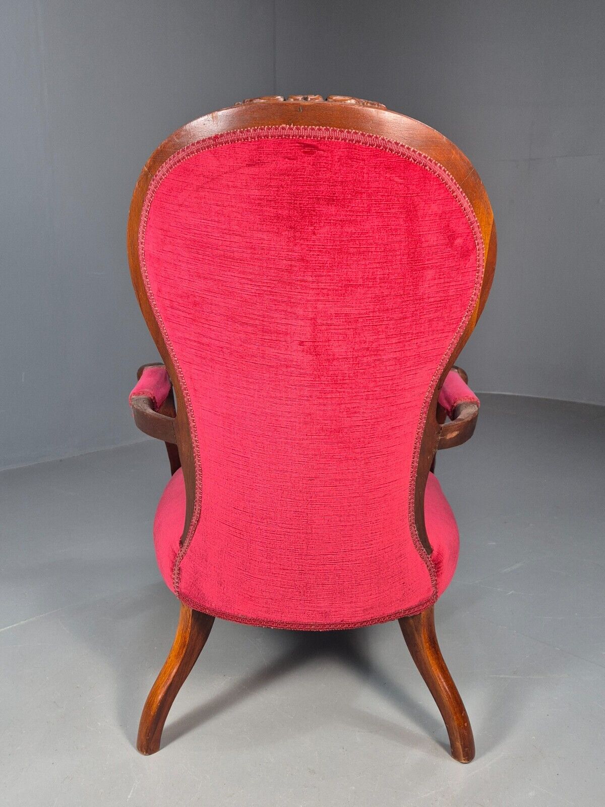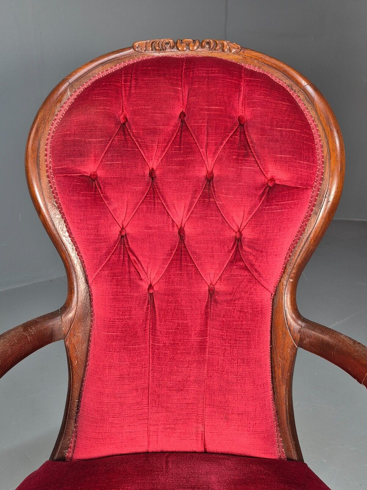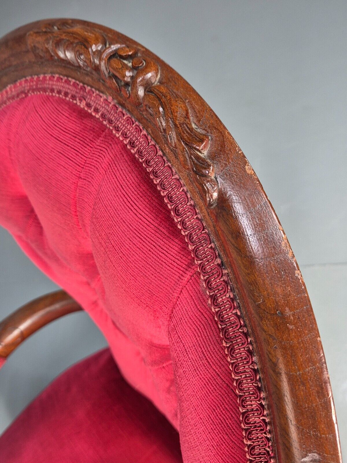Vintage Fauteuil Chair Red Buttoned Velour Mahogany Antique 1900s EB8440 VCAR