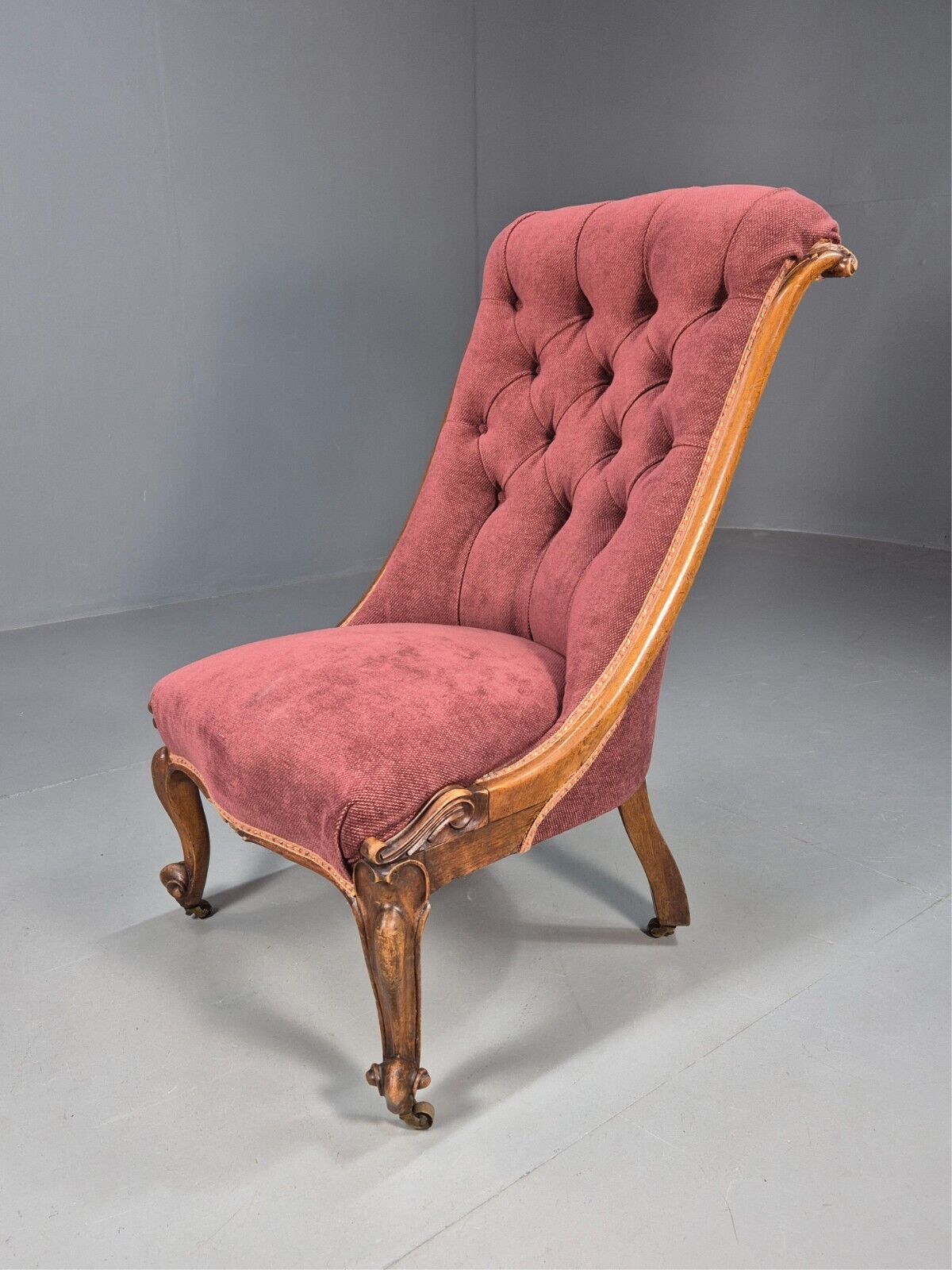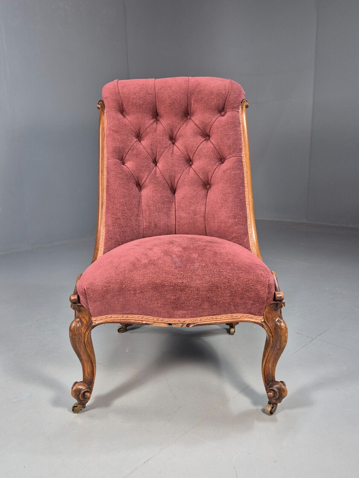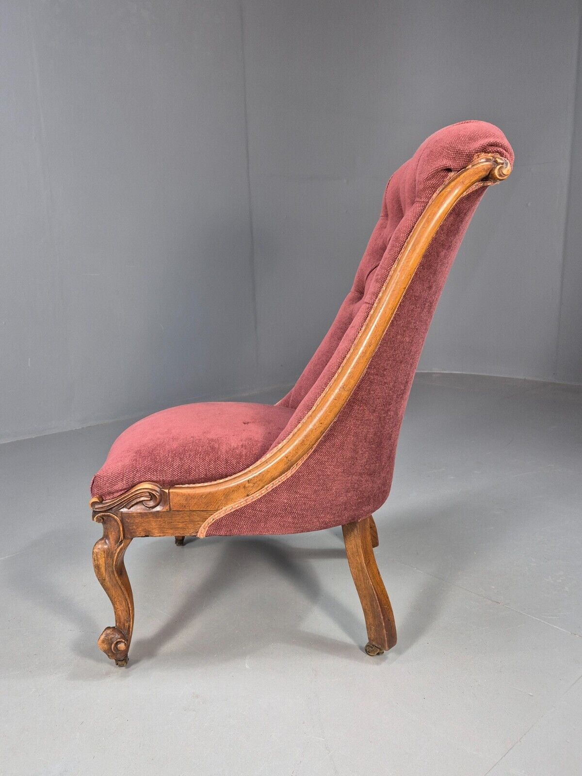 Vintage Nursing Chair Pink Cotton Fruitwood Frame 1800s Antique EB8454 VCLO